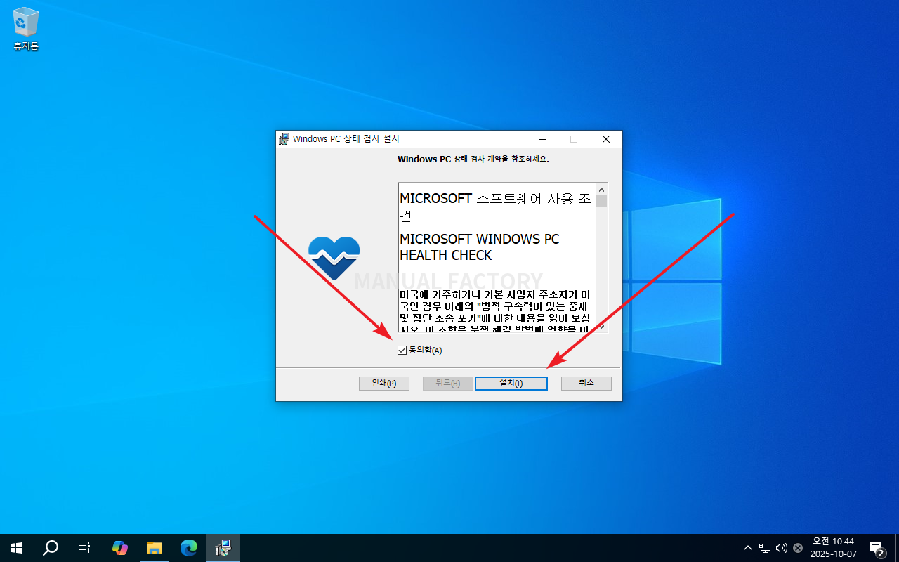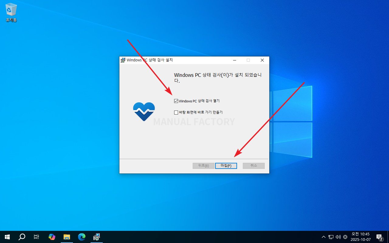 - 설치가 완료된 후 [Windows PC 상태 검사 열기]에 체크된 상태애서 [마침]을 클릭하거나...