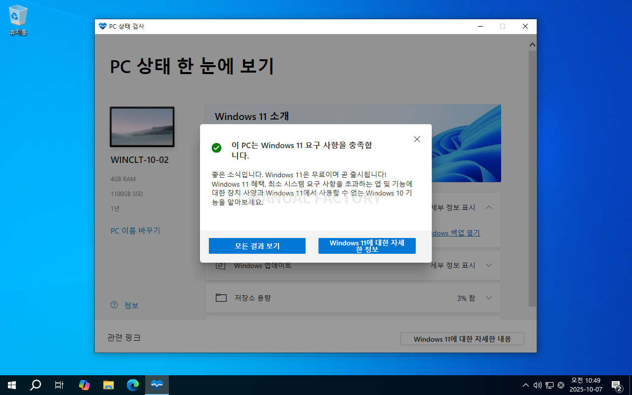 윈도우 10 / 윈도우 11로 업그레이드 가능한지 확인하는 방법