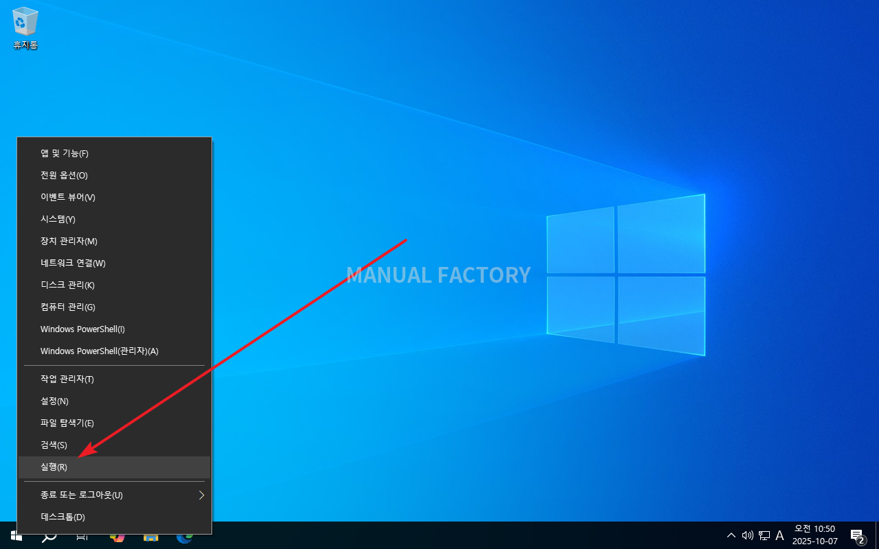 - 시작 아이콘에 마우스를 올리고 우클릭합니다.