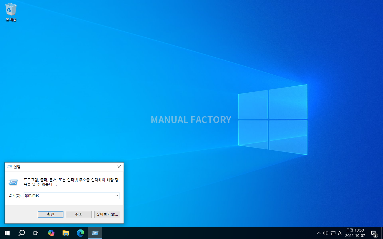 - tpm.msc를 입력하고 엔터키를 누릅니다.